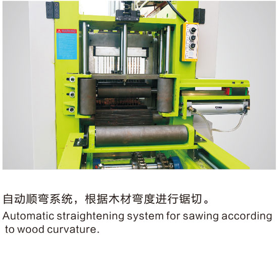 自動順彎系統,根據木材彎度進行鋸切