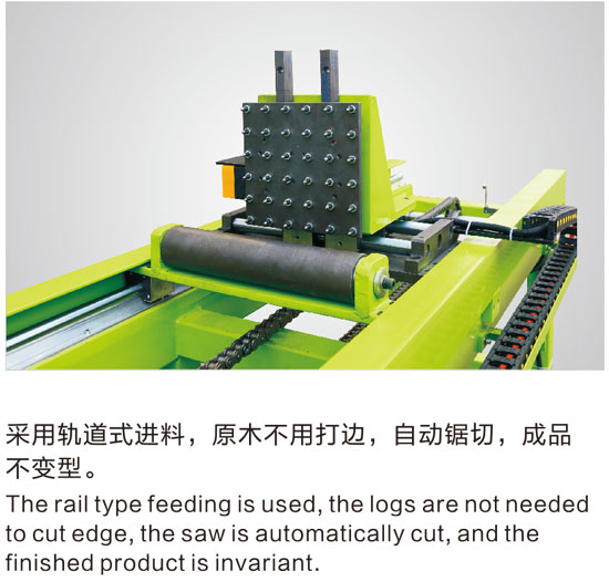 采用軌道式進料,原木不用打邊,自動鋸切,成品不變型。